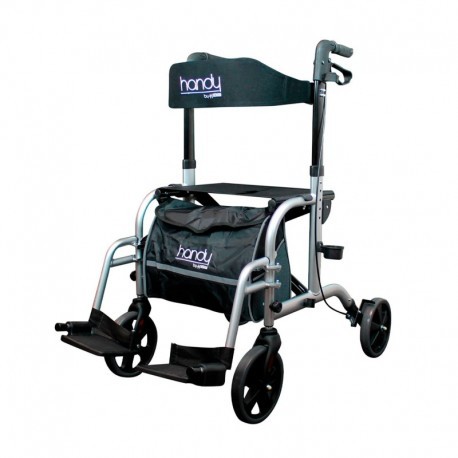 Reposabrazos y reposapies plegables para transformar la andadera en silla de trasporte