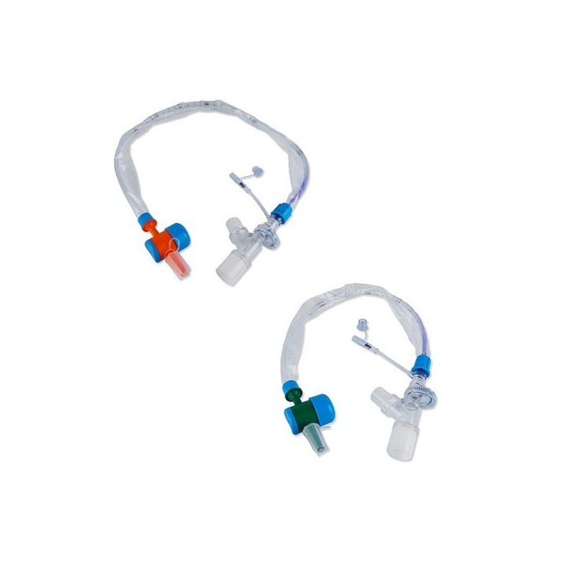 Dispositivo médico para succión cerrada, endotraqueal o traqueotomía, en pacientes adultos y pediátricos o neonatales. Ty-care Excel cuenta con válvula giratoria de acceso al paciente, catéter aspirador separable con manga, catéter aspirador atraumático de doble densidad y conector de codo giratorio a un ángulo de 120º.