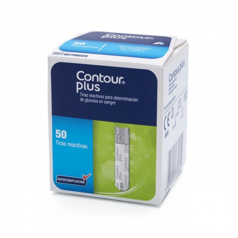 Miden cuantitativamente la concentración de glucosa en sangre capilar y venosa entera, para utilizar con el instrumento CONTOURTM PLUS de Bayer.
